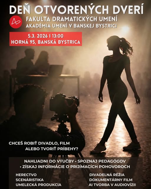Záujemcov o štúdium pozývame na Deň otvorených dverí Fakulty dramatických umení Akadémie umení v Banskej Bystrici.