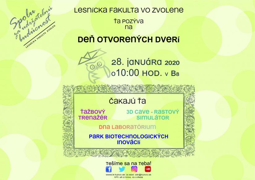 Príď aj TY na Deň otvorených dverí na Lesníckej fakulte TU vo Zvolene, ktorý sa uskutoční 28.januára 2020 v posluchárni B8!