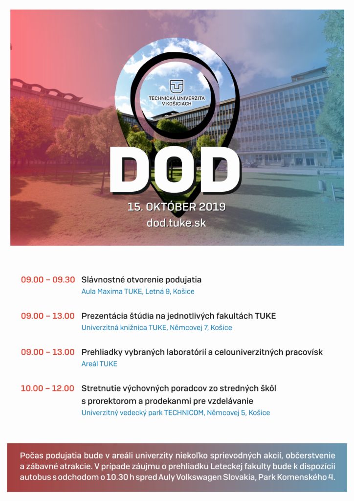 Technická univerzita v Košiciach pozýva záujemcov o štúdium na Deň otvorených dverí, ktorý sa bude konať dňa 15. októbra 2019.