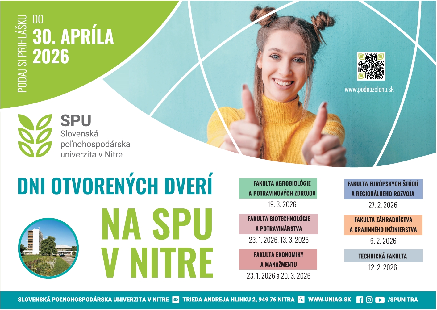 - 19. 3. 2026, 9:00 – 13:00, Tr. A. Hlinku 2, Aula SPU, výučbové priestory FAPZ