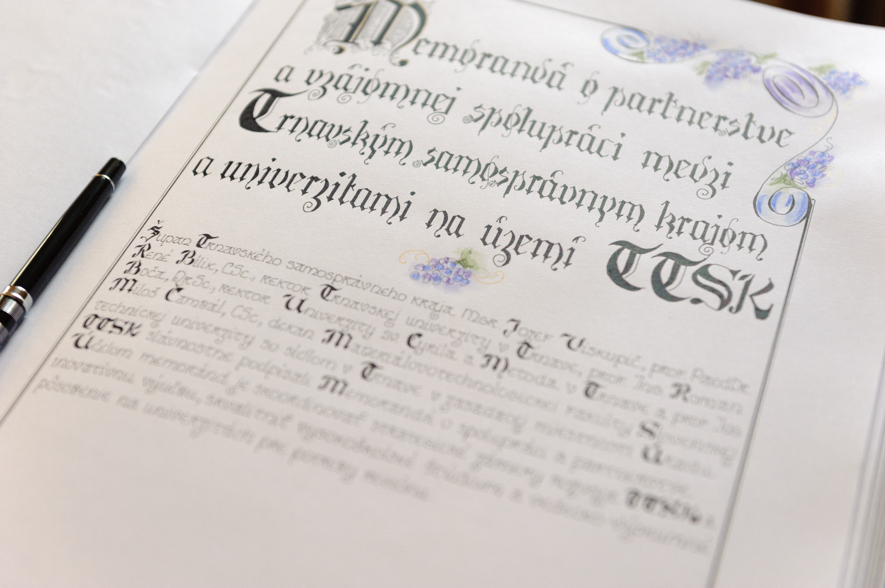 Trnavský župan Mgr. Jozef Viskupič podpísal memorandum o spolupráci s tromi vysokoškolskými subjektami na území mesta Trnava - Univerzitou sv. Cyrila a Metoda v Trnave, Trnavskou univerzitou v Trnave a s Materiálovotechnologickou fakultou v Trnave, STU Bratislava. Za jednotlivé inštitúcie dokumenty podpísali: prof. Ing. Roman Boča, DrSc. - rektor UCM v Trnave, prof. PaedDr. René Bílik, CSc. - rektor TU v Trnave a prof. Ing. Miloš Čambál, CSc. - dekan MTF STU.