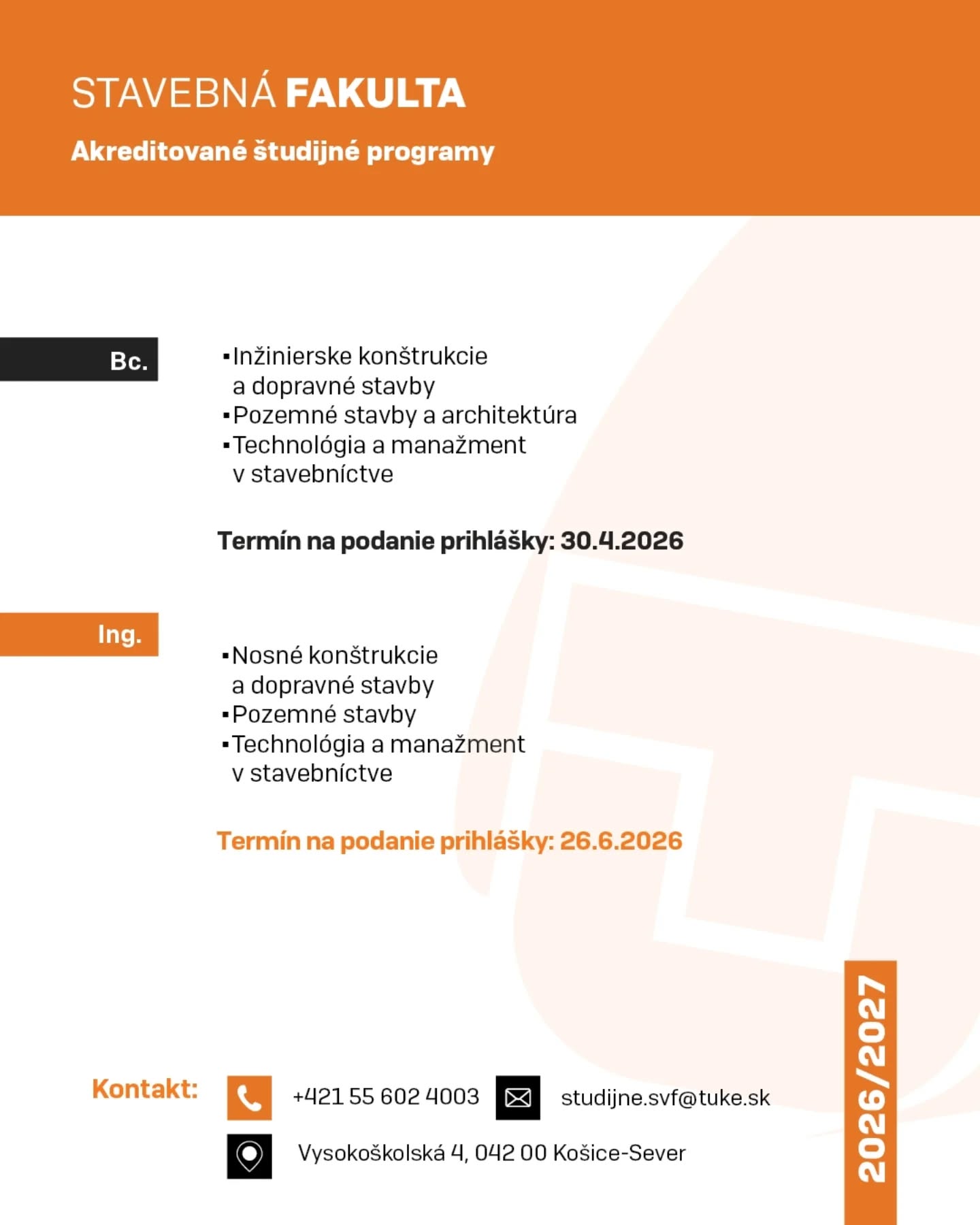 Buduj budúcnosť so Stavebnou fakultou TUKE!