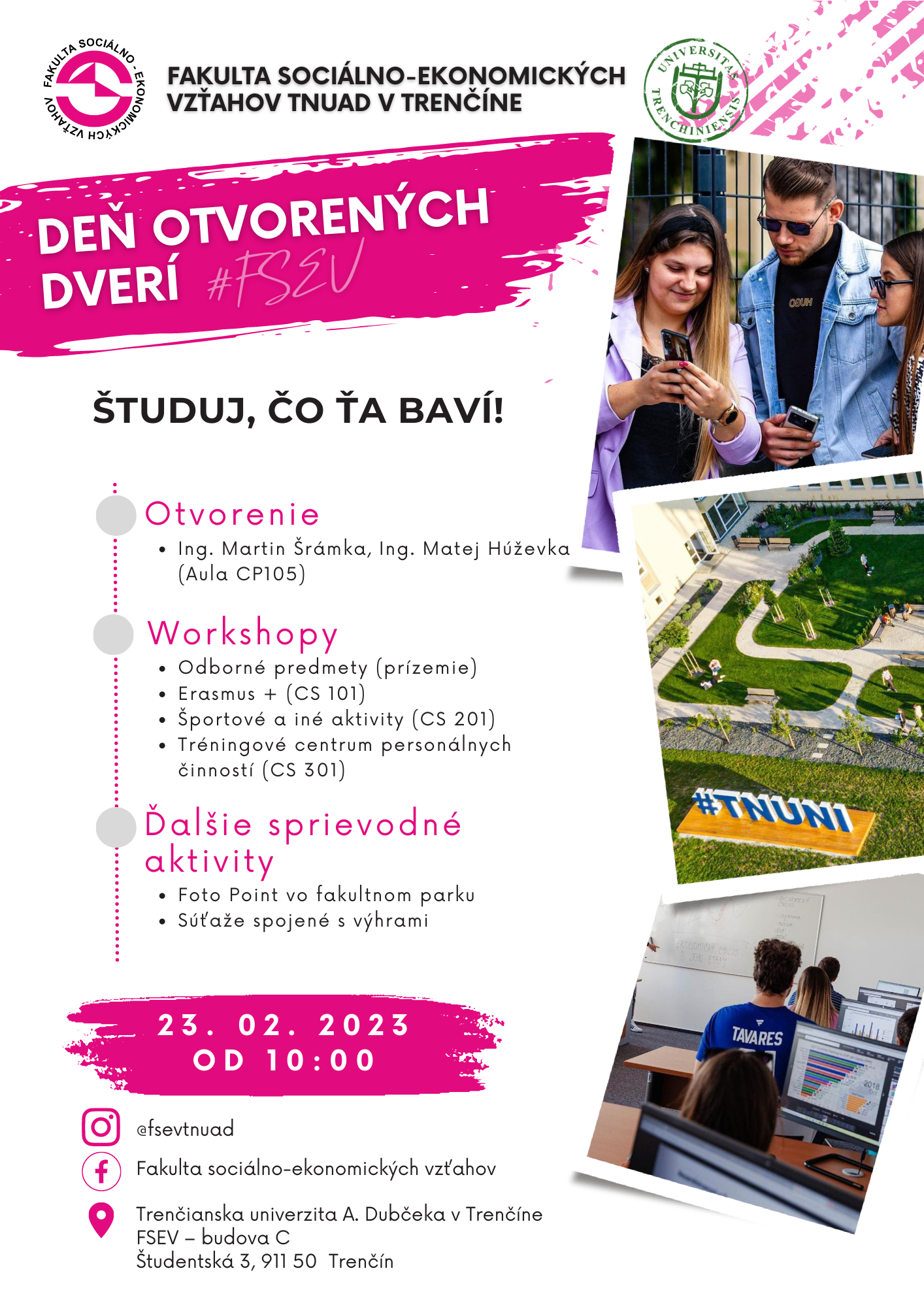 Fakulta sociálno-ekonomických vzťahov TnUAD v Trenčíne vás srdečne pozýva na tohtoročný Deň otvorených dverí!